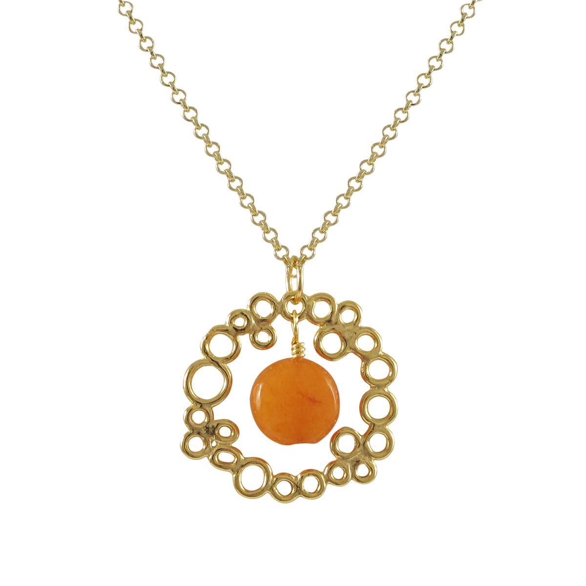 Honey 10Mm Round Semi Precious Stone In Gold Plated Brass Filigree Pendant, 1.08", On Gold Plated Sterling Silver Chain, 18"