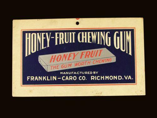 Honey Fruit Chewing Gum Cardboard String Hanger Sign. Very good condition. 9 1/4 X 5 1/2 inches.