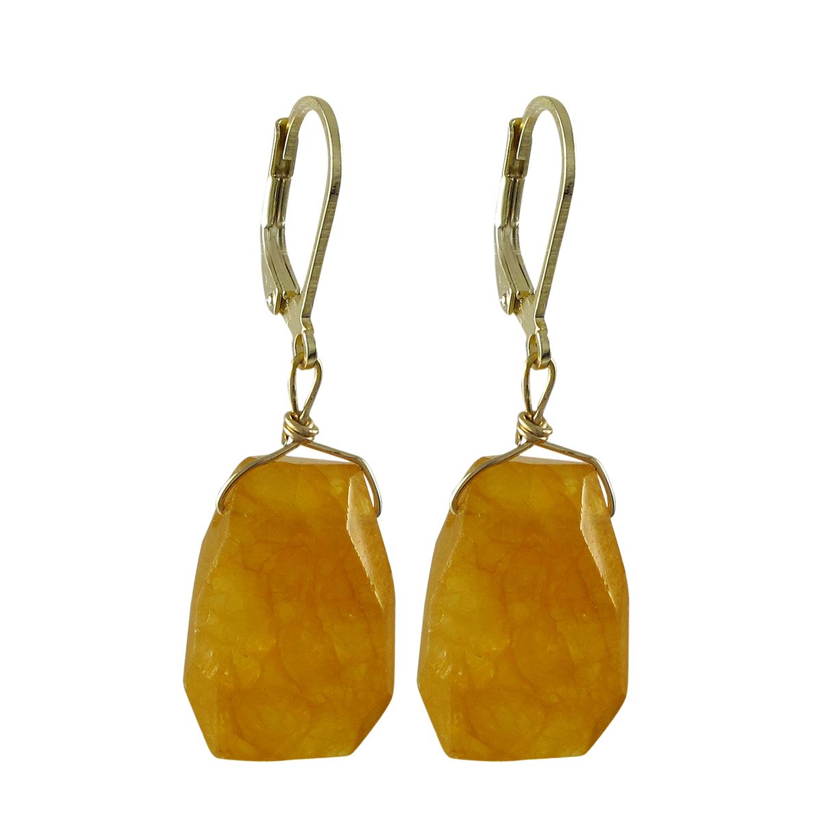 Honey Semi Precious Stone On Gold Tone Sterling Silver Lever Back Earrings -1.54"