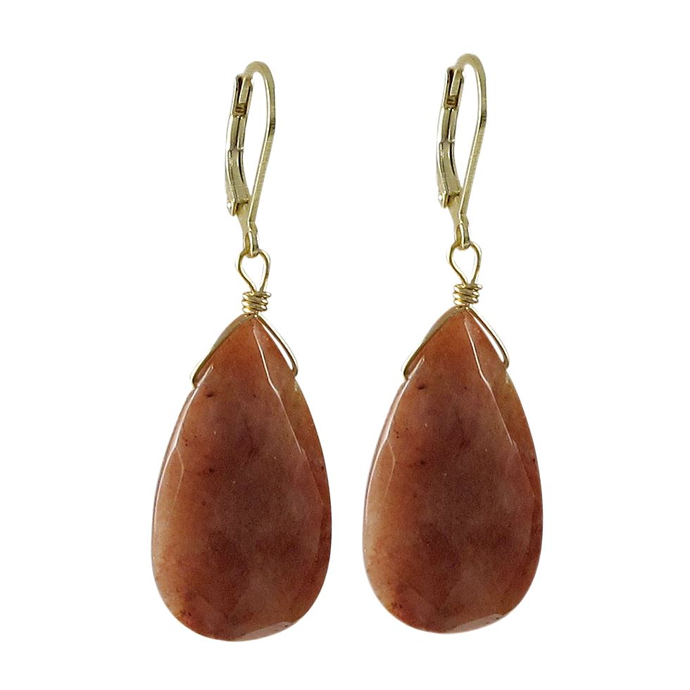 Honey Semi Precious Stone On Gold Tone Sterling Silver Lever Back Earrings -1.87" (Approximately)