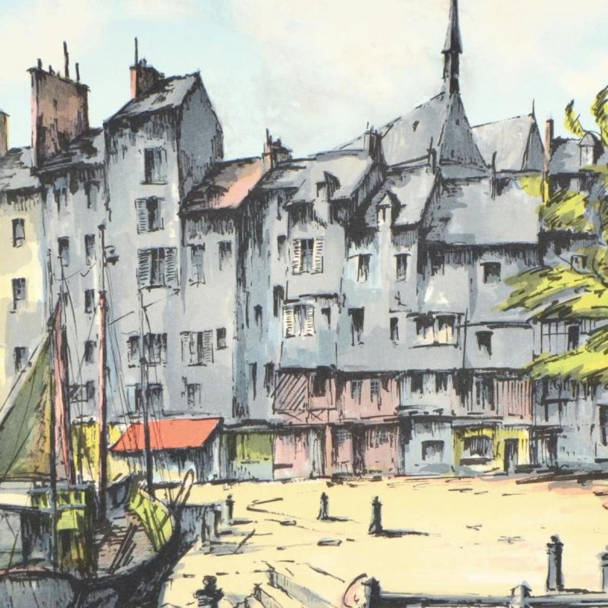 "Honfleur" is a limited edition lithograph on paper by Laurant, numbered and hand signed by the artist. Measures approx. 21.5" x 29.5" (border). 16.5" x 25" (image).