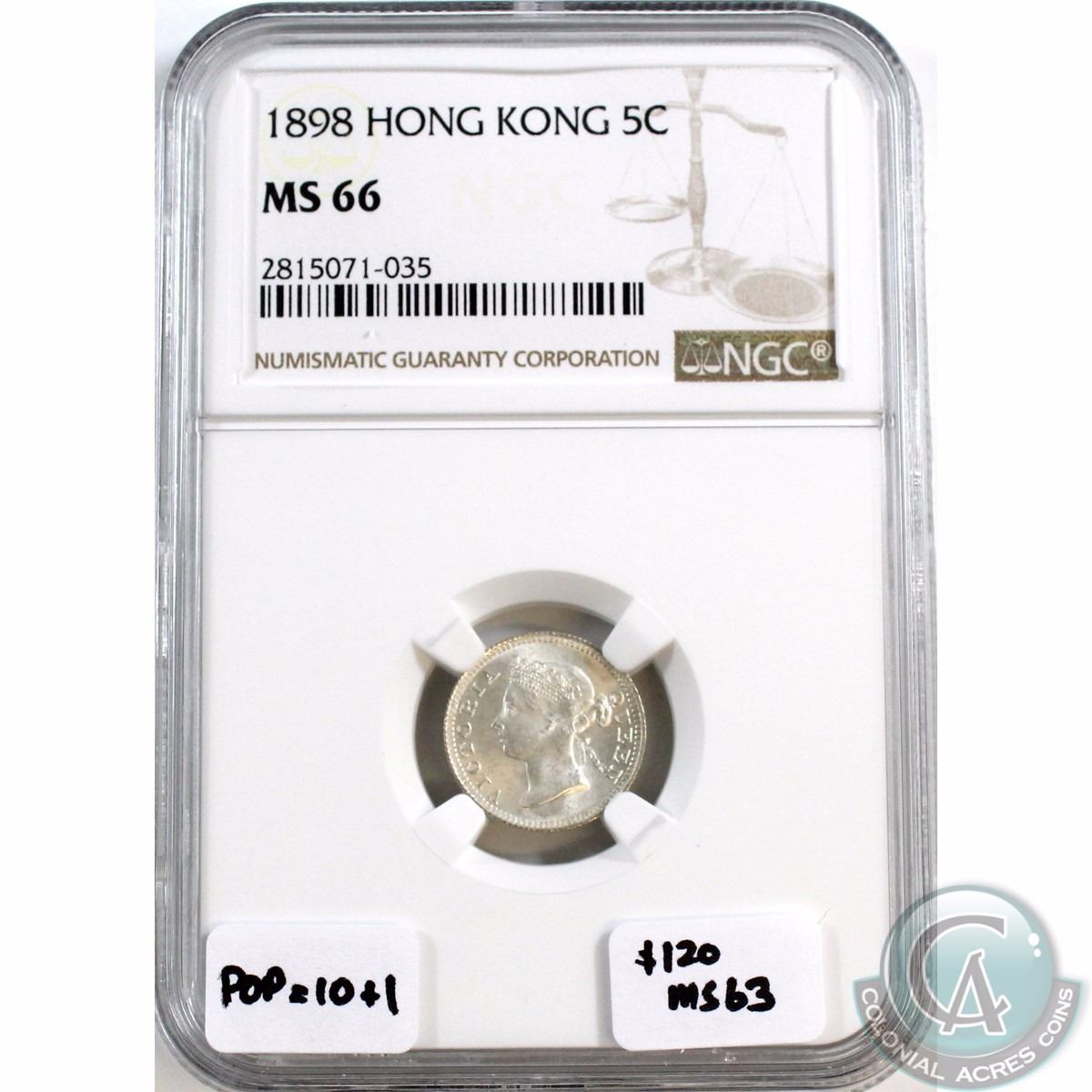 Hong Kong; 1898 5-cent NGC Certified MS-66. Tied for 2nd finest, with population of 10 and only one graded higher! Trend value for MS-63 is $120