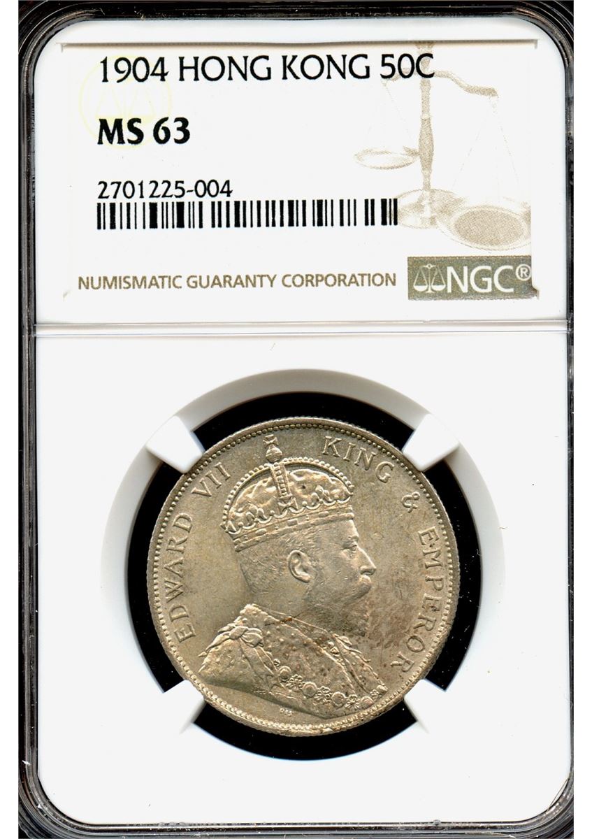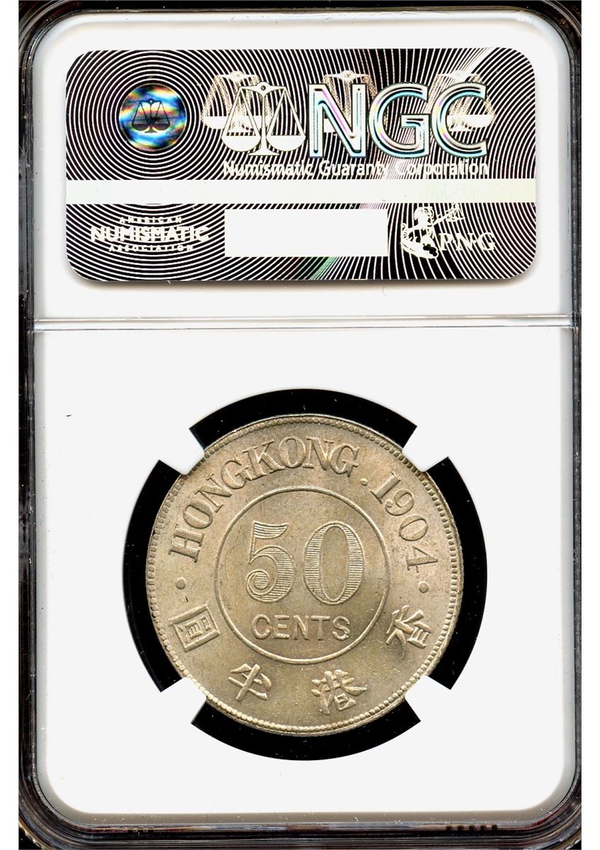 Hong Kong 1904, Silver 50 Cents, KM 15, Attractive coin with almost no toning, The reverse is fantastic and very flashy! One of the best, NGC certified MS-63
