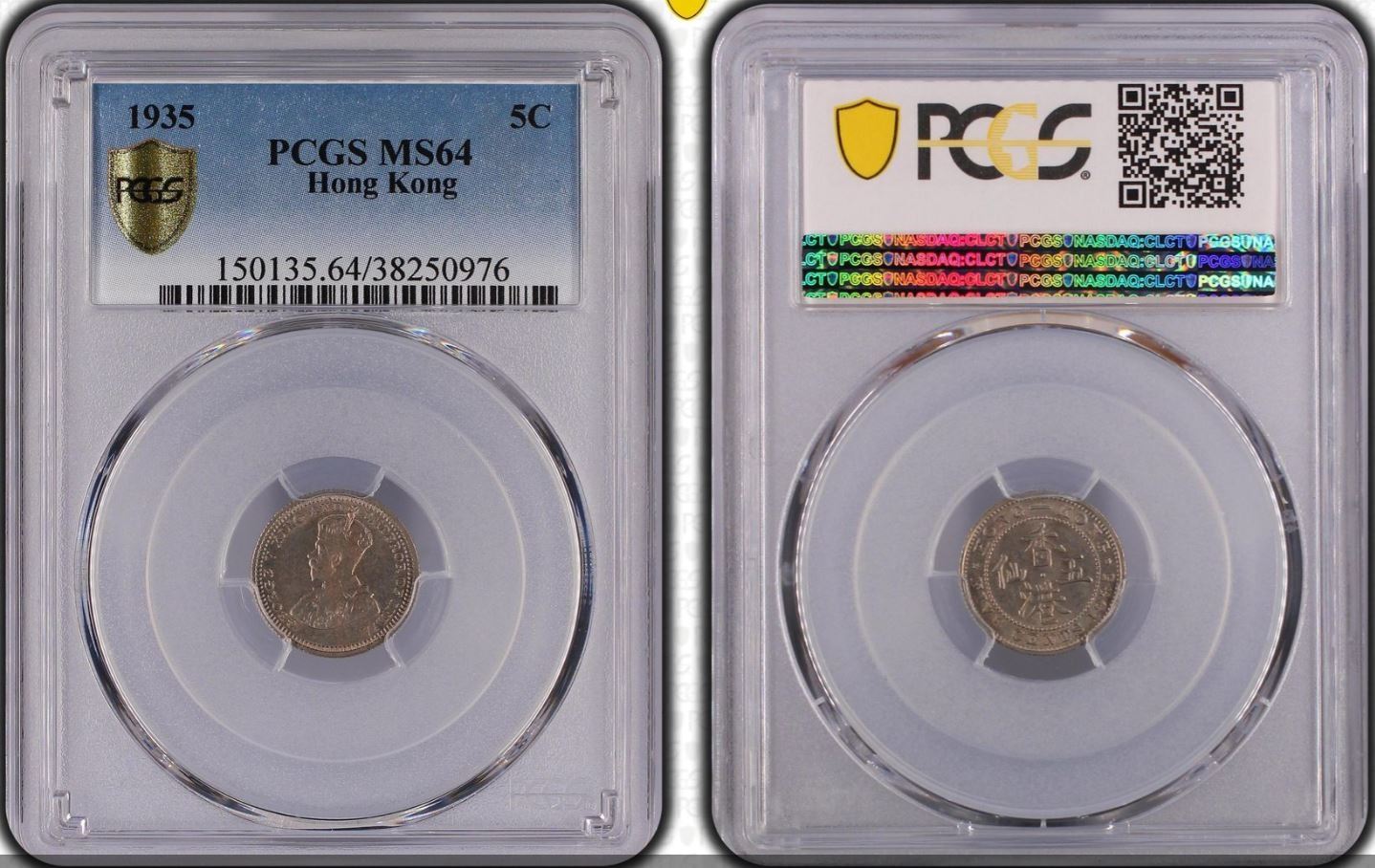 1935, 香港喬治五世伍仙鎳銅幣, PCGS MS64. 重要年份
