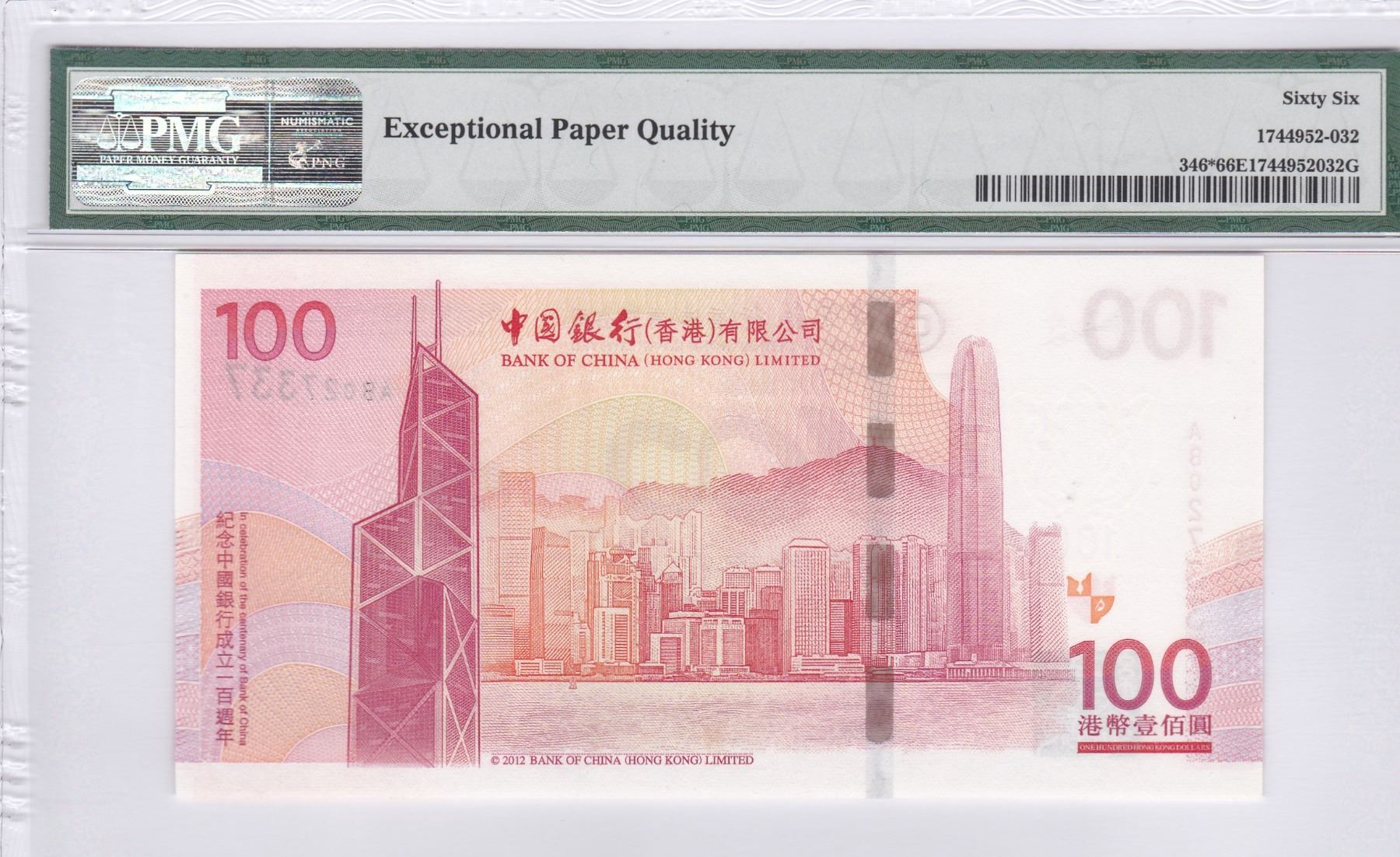 Hong Kong, Bank of China Ltd., 2012, $100, AB027337. PMG 66EPQ. Commemorative. Replacement.