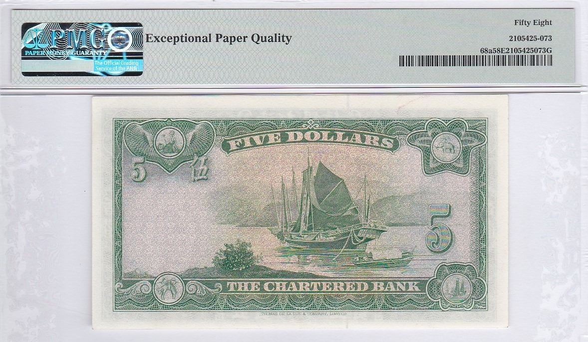 Hong Kong, Chartered Bank, 5 dollars, 1961, P-68a, PMG 58EPQ Keydate of this series