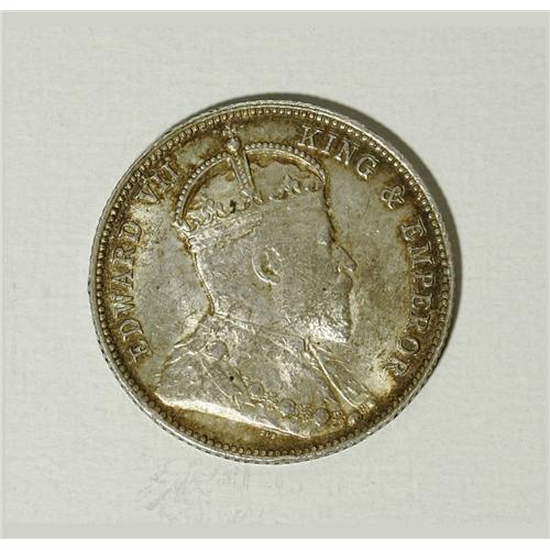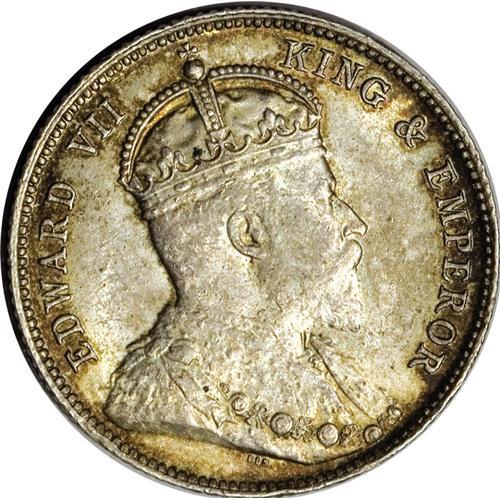<B>Edward VII. 20 Cents 1902,</B></I> Pr-51, KM14, Choice AU-UNC with full gleaming luster and light russet peripheral toning. The strike is adequate for the type and the surfaces exhibit light marks. A nice example of this short-lived type.<BR><BR><b>Shipping:</b> Coins & Currency (<a target="_blank" href="http://www.heritageauctions.com/common/shipping.php">view shipping information</a>)