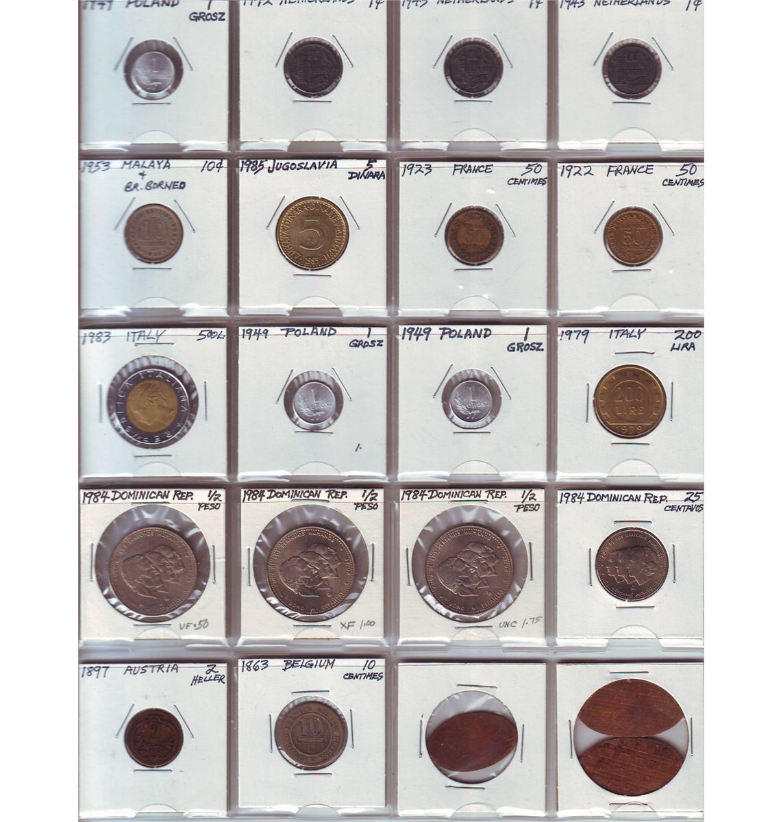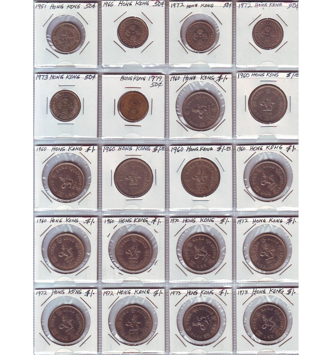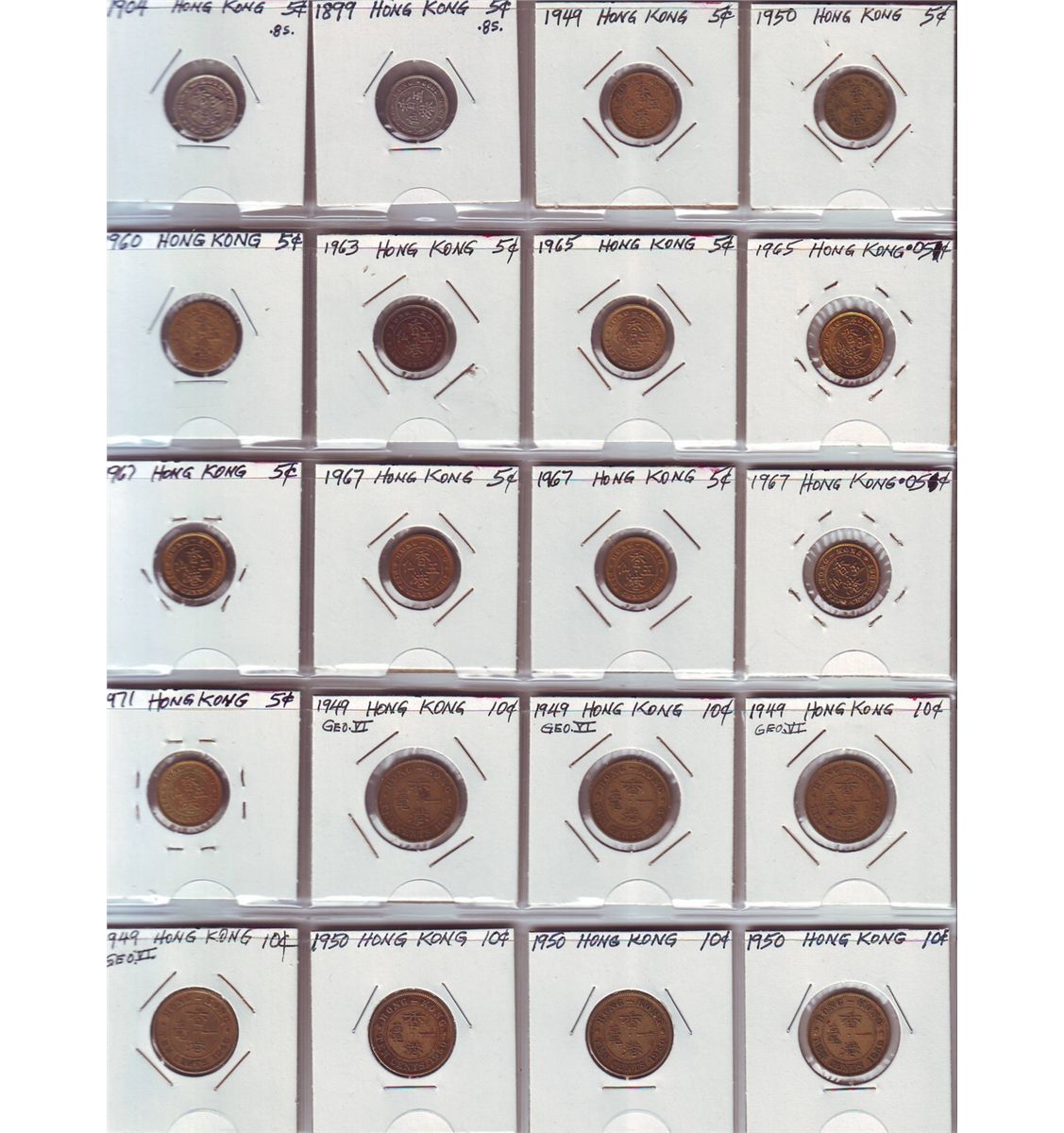 Hong Kong; Lot of approximately 75+ coins. Dates 1899 to 1978. Two coins date prior 1949. Small lot of 19 Poland Nehterlands, Italy, Austira and Dom. Republic modern issues included. A nice mix.