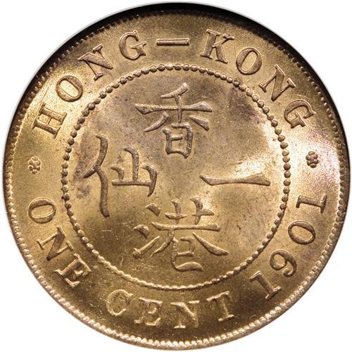 Hong Kong: Victoria. 1 Cent 1901, KM4.3, MS65 Re