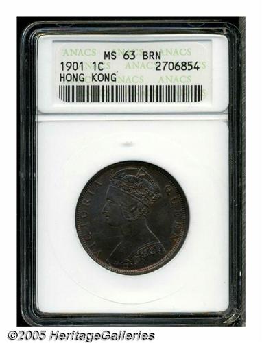 <B>Victoria Cent 1901H, </B></I>KM4.3, MS63 ANACS BRN, a nice example with fully glossy surfaces and original luster in the legends, the "H" is not mentioned on the holder, but this is the Heaton Mint striking.