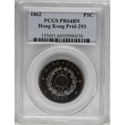 <B>Victoria. Pattern 1 Cent 1862,</B></I> Pr-293, KM-Pn37, Proof 64 Brown PCGS. Even steel-blue patina with bold definition and a few light contact marks. Very rare.<BR><BR><b>Shipping:</b> Coins & Currency (<a target="_blank" href="http://www.heritageauctions.com/common/shipping.php">view shipping information</a>)