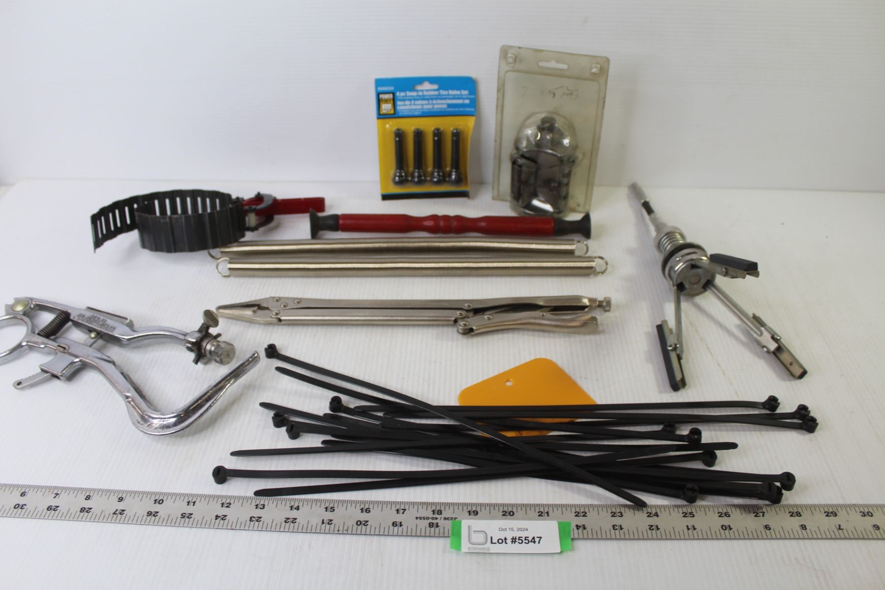 Honing Tool - Long Vice Grip - (4) Snap-in Rubber Valve Stems - Zip Ties - Filter Wrench - Misc. Items