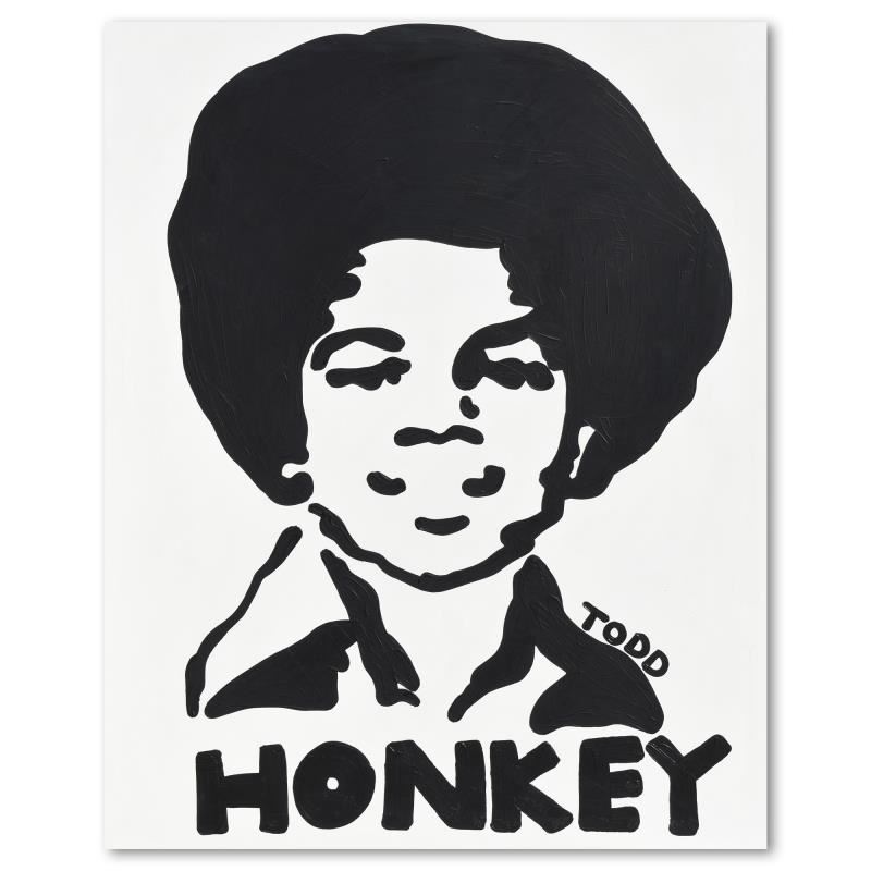 "Honkey" is an original acrylic painting on gallery wrapped canvas by Todd Goldman, hand signed by the artist. Includes Letter of Authenticity. Measures approx. 48" x 60" (image). Due to the way this piece was stored there may be minor wear or signs of age (such as wear on the corners) but the piece is in overall good condition.