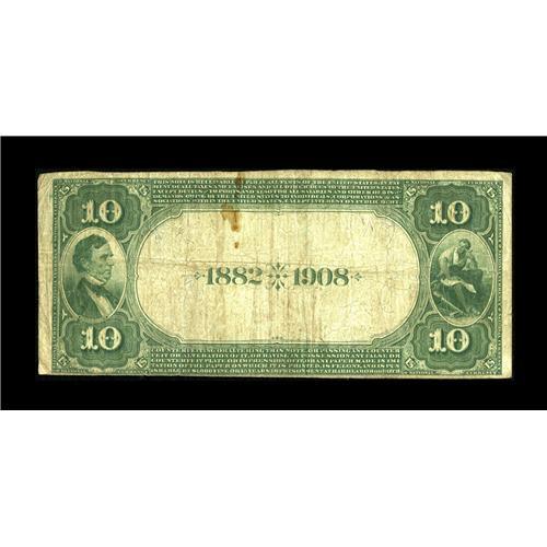 <B>Honolulu, HI</B></I> - $10 1882 Date Back Fr. 545 <B>The First NB of Hawaii</B></I> Ch. #(P)5550<BR>This <B>Fine</B></I> addition to the Territorial census still displays the stamped officers' signatures. We do note a small area of tea colored staining at top. We sold a $5 1882 Date Back in F-VF from this issuer at our September, 2006 for $4,025, while our Florida United Numismatists 2005 Signature Sale placed a VF-EF of this same type and denomination for $6,325. We anticipate that this offering should sell for no less than...<BR><BR><b>Shipping:</b> Coin/Currency (<a target="_blank" href="http://www.heritageauctions.com/common/shipping.php">view shipping information</a>)