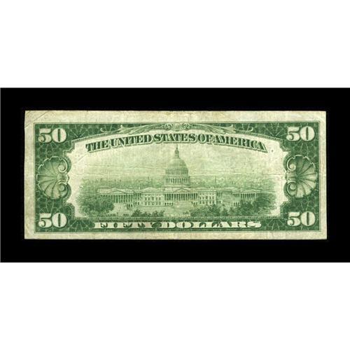 <B>Honolulu, HI</B></I> - $50 1929 Ty. 1 <B>The Bishop First NB of Hawaii</B></I> Ch. # 5550<BR>The overprint bearing the bank title and charter numbers remains bold, and one could argue that the note faces up like a VF, despite being a touch flat. Two pinholes are noted, but are only mentioned for the sake of accuracy. <B>Fine.</B></I><BR><BR><b>Shipping:</b> Coin/Currency (<a target="_blank" href="http://www.heritageauctions.com/common/shipping.php">view shipping information</a>)