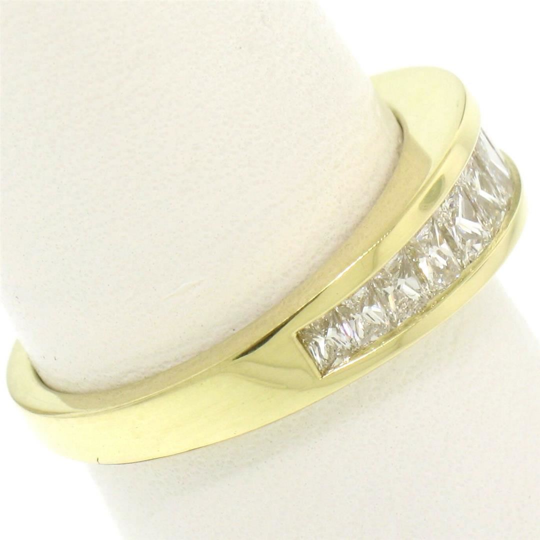One Designer Honora TOP QUALITY 18K Gold 1.25ctw Channel Set Elongated Princess Cut F VS Diamond Wedding Band Ring. Item Details: Material: 18k Solid Yellow Gold, Weight: 5.0 Grams, Stone(s): (13) Natural Genuine Diamonds - Custom Elongated Princess Cut - Channel Set - VS1/VS2 Clarity - F/G Color, Total Carat Weight: 1.25 (approx.), Ring Size: 6.5 (We can custom size this ring.), Ring Width: 5.22mm, Ring Height: 3.22mm rise off the finger, Condition: Like New!
