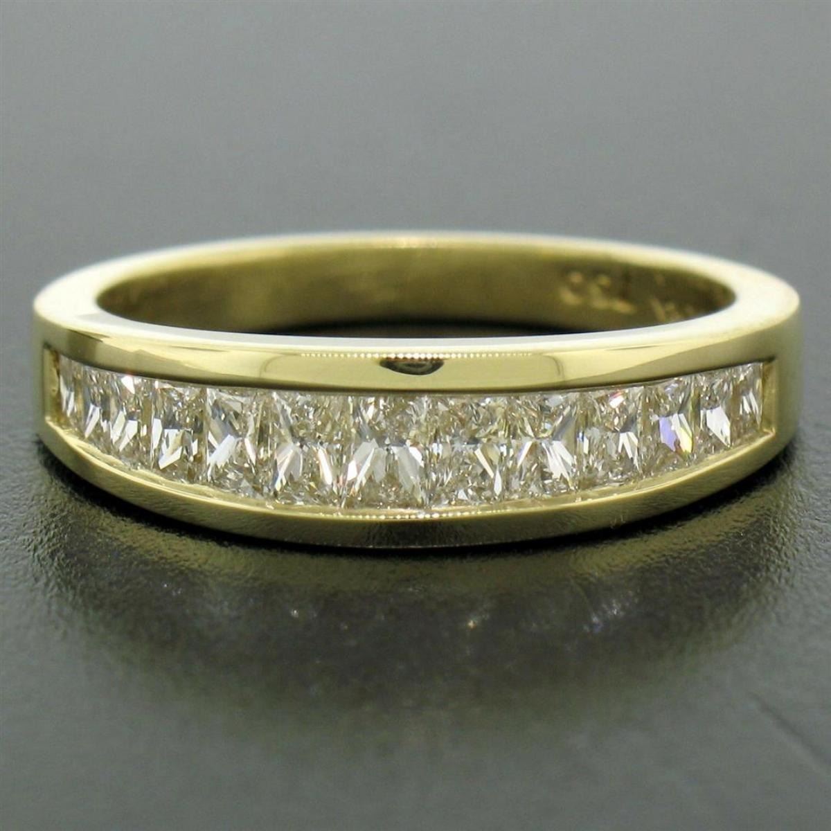 One Designer Honora TOP QUALITY 18K Gold 1.25ctw Channel Set Elongated Princess Cut F VS Diamond Wedding Band Ring. Item Details: Material: 18k Solid Yellow Gold, Weight: 5.0 Grams, Stone(s): (13) Natural Genuine Diamonds - Custom Elongated Princess Cut - Channel Set - VS1/VS2 Clarity - F/G Color, Total Carat Weight: 1.25 (approx.), Ring Size: 6.5 (We can custom size this ring.), Ring Width: 5.22mm, Ring Height: 3.22mm rise off the finger, Condition: Like New!