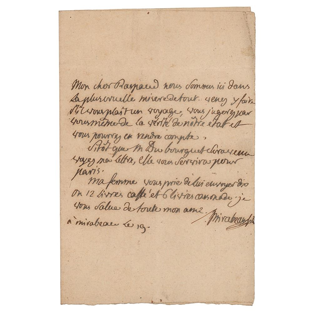 ALS in French, signed “Mirabeau fils,†one page, 4.25 x 6.5, no date. Untranslated handwritten letter by Mirabeau. In fine condition.