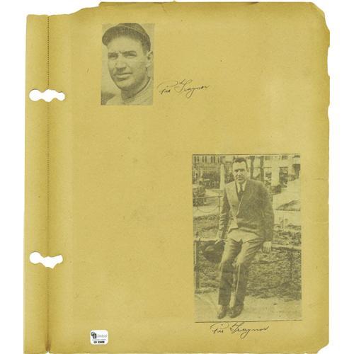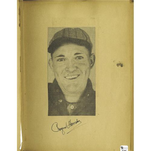 <B>Amazing 1930's Child's Autograph Scrapbook with Rare Hall of Fame Signatures</B></I> Franklin Young, the boy who compiled this wonderful assortment of newspaper clippings and flawless ink signatures, obviously took this hobby very seriously. The newspaper photographs and articles are cut with military precision, glued careful to the pages without the slightest crooked angle. And he chose his subjects well. Though there are obvious sentimental favorites, and the book tends toward the Pittsburgh Pirates, he is sure to include the men who were making the biggest noise in the sports pages as well, offering some of the finest vintage signatures from the Hall of Famers of the day that we've seen. Well over 125 autographs are compiled in this thrilling volume, and while many of the pages have come loose from the bindings, and are often chipping at the edges, not a single autograph is adversely affected. Occasionally the boy had the ballplayers sign the newspaper clipping itself, and other times they would sign the page beside the clipping instead. For description's sake, we will note (clip) beside the autographs that are on the newspaper image itself. Highlights include: Rogers Hornsby (2), Orel Hildebrand, Jim Bottomley, Rogers Hornsby (clip), Charlie Grimm (2), Augie Galan (2), Charlie Root, Tony Lazzeri, Gabby Hartnett, Lon Warneke, Pie Traynor (3), Arky Vaughan (clip, 2), Cookie Lavagetto, Grimm/Hartnett/Root together below a photo of all three, Honus Wagner (amazing, huge and perfect signature!), Waite Hoyt (edge wear barely touches unpersonalized inscription), Paul Waner, Cookie Lavagetto (clip), Fred Schulte, Paul Waner (clip), Monty Stratton, Ted Lyons, Jimmie Dykes, Dizzy Dean and Paul Dean side by side, scorecard signed by Jimmie Dykes, Luke Sewell and three more White Sox. Each autograph in the book is accompanied by its own, separate Global certificate of authenticity, so breakdown possibilities are tremendous. An amazing opportunity for both dealers and collectors. <I>LOA from PSA/DNA.</B></I> <BR><BR><B>Important notice:</B> Heritage usually auctions material at the rate of 200-250 lots per hour. On some occasions eBay Live bid software or the Internet may not be able to keep up with the pace of the auction. We recommend placing a realistic absentee bid now as insurance to avoid disappointment. Occasionally the auctioneer may eliminate or reject an eBay Live bid, and the auctioneer may also reopen a lot after the close of the eBay live bidding (usually because we missed an audience bid), and may reject your bid even if it shows you as the winning bidder. By bidding via eBay Live, you agree that Heritage may award the lot to another bidder at its sole discretion under the circumstances described above or any other reasonable circumstances. Since eBay bids are not shown to us until we open the lot on the floor, we treat those bids just like floor bids. In most cases the floor responds before the eBay bid is presented to us, due to Internet lag time, so for consistency we have made it a policy that floor bids are always considered first over tie eBay live bids. Also please note that all Heritage lots purchased through eBay Live carry a 22.5% Buyer's Premium. Please make sure you read the Terms and Conditions before you bid. This lot is being auctioned in conjunction with a live floor auction by Heritage Galleries & Auctioneers. All final auction and invoice information will be supplied by Heritage Galleries & Auctioneers, and all other information should be considered preliminary. Lot:19061 <BR><BR><B>Winning Notification and Billing:</B> After the FINAL session in this auction is complete, Heritage will send e-mail and snail mail invoices. This process normally takes several days. All final auction and invoice information will be supplied by Heritage Galleries & Auctioneers, and all other information should be considered preliminary. <BR><BR>This auction will be conducted on a live auction floor and over the Internet through eBay Live. If you choose to place an absentee bid, please take a moment to <font color='#0000ff'><u><a href='http://pages.ebay.com/liveauctions/help/before/laabsentee.html'>learn how eBay Live absentee bidding works</a></u></font><font color='#000000'>