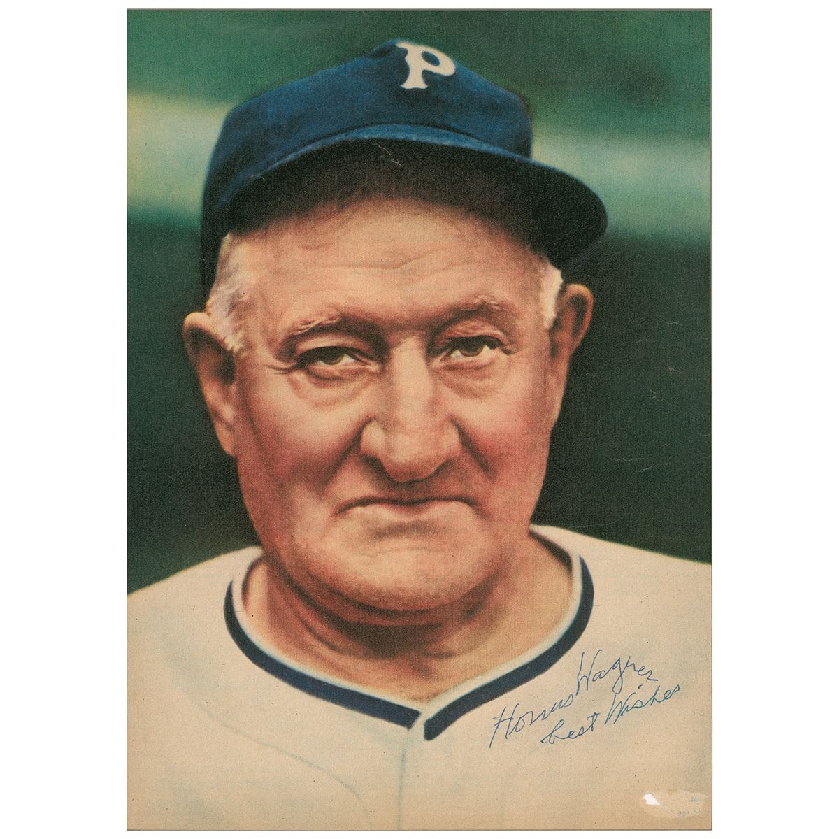 Color vintage 8.25 x 11 magazine photo of Wagner in his Pirates uniform, signed in blue ballpoint. Matted to an overall size of 11 x 14. Some light wrinkling and a small hole and surface loss to lower right corner, otherwise fine condition. A vintage photo from Wagner’s time as a Pirate’s hitting instructor.