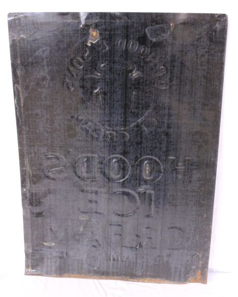Embossed, with cow logo. Has some touch-up. 28" x 20"