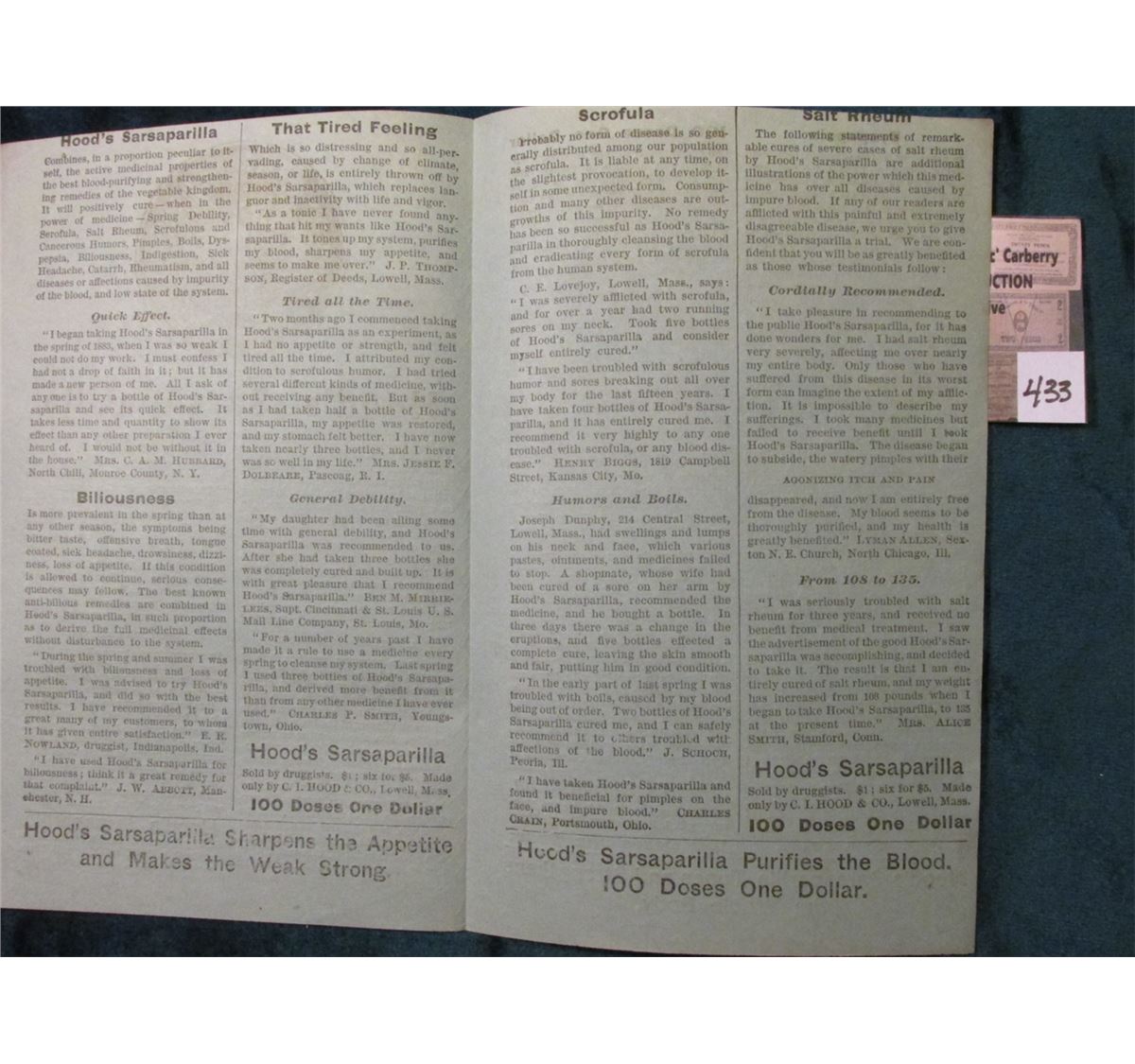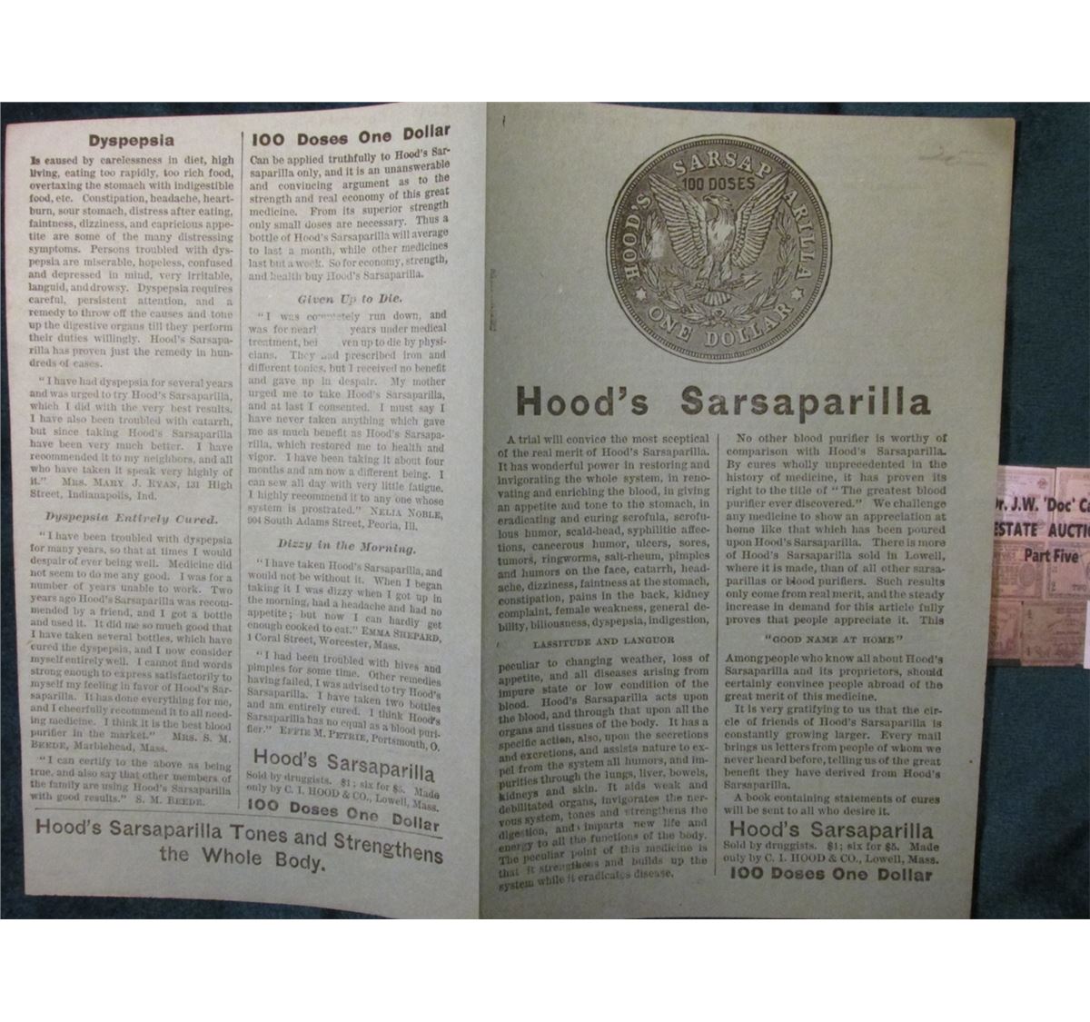 "Hood's Sarsaparilla" Advertising Brochure. 100 Doses for One Dollar.