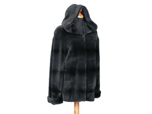 Bottle-green velvet hooded SAGAmink jacket. Pull fastener closing with Rhinestones at the front side. Model: R 44515 / CK 2159 Length: 70 cm Size: 40 (Italian size)