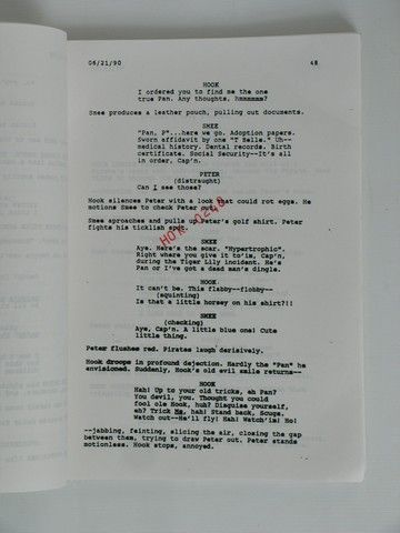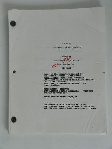 From the personal collection of legendary special effects artist and effects sculptor Yarke Alfer, this is a rare production script for "Hook!". This script lists Nick Castle as the director, however Steven Spielberg fell so in love with the script that he made a deal with Castle to let him direct it himself. Alfer did however end up working in special effects and as the chief sculptor on the final Spielberg production. Contains the official security stamp on every page (HOK0248).