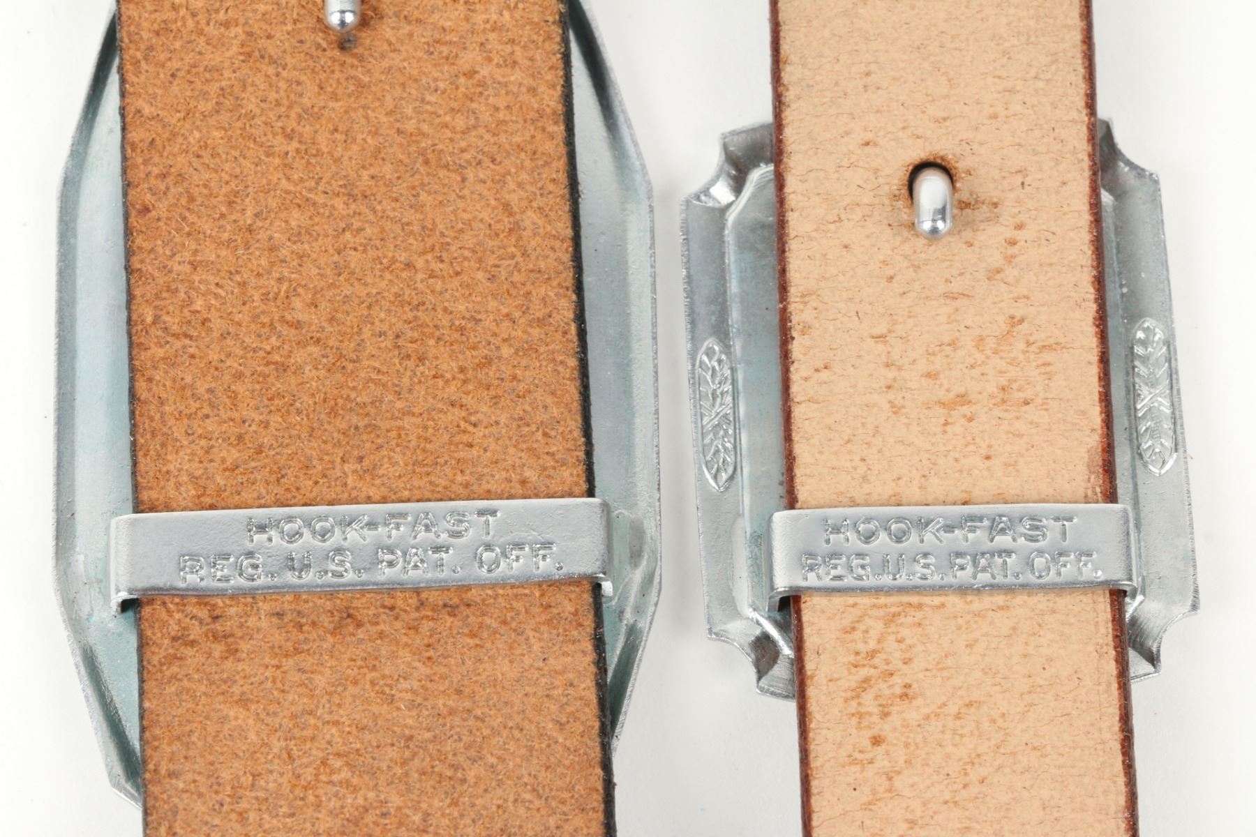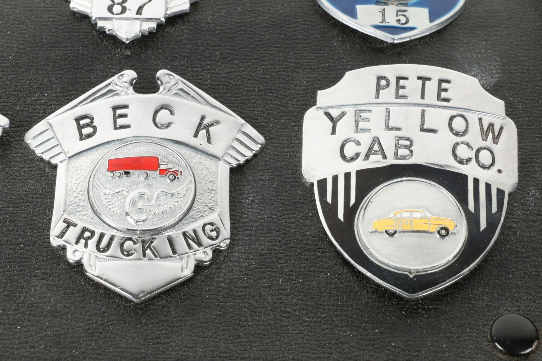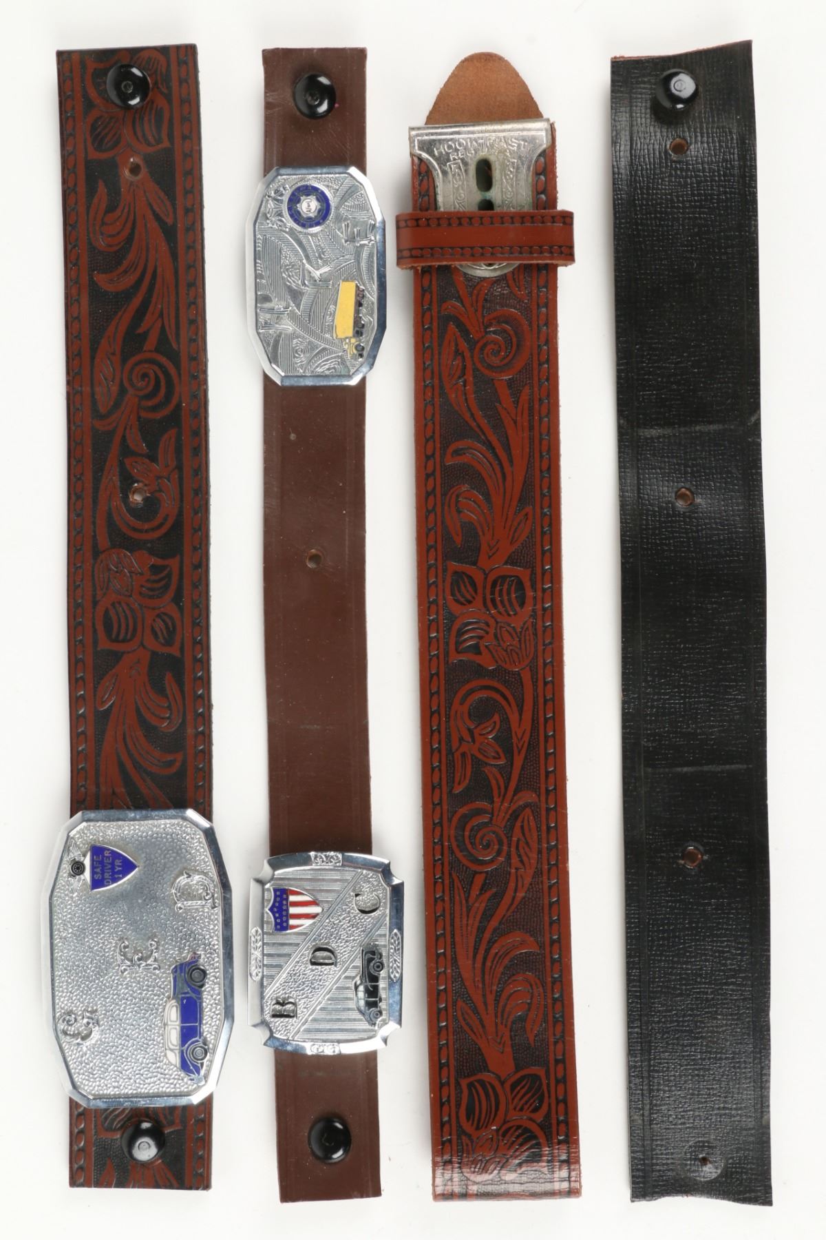 Eleven (11). American. Circa 1940’s. Original box. Enamelled Badges and buckles. Badges approximately 2.5” x 2.5” Minor wear to the case. Complete. $300-500.