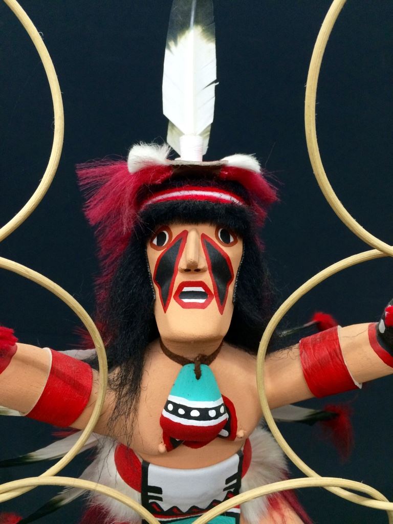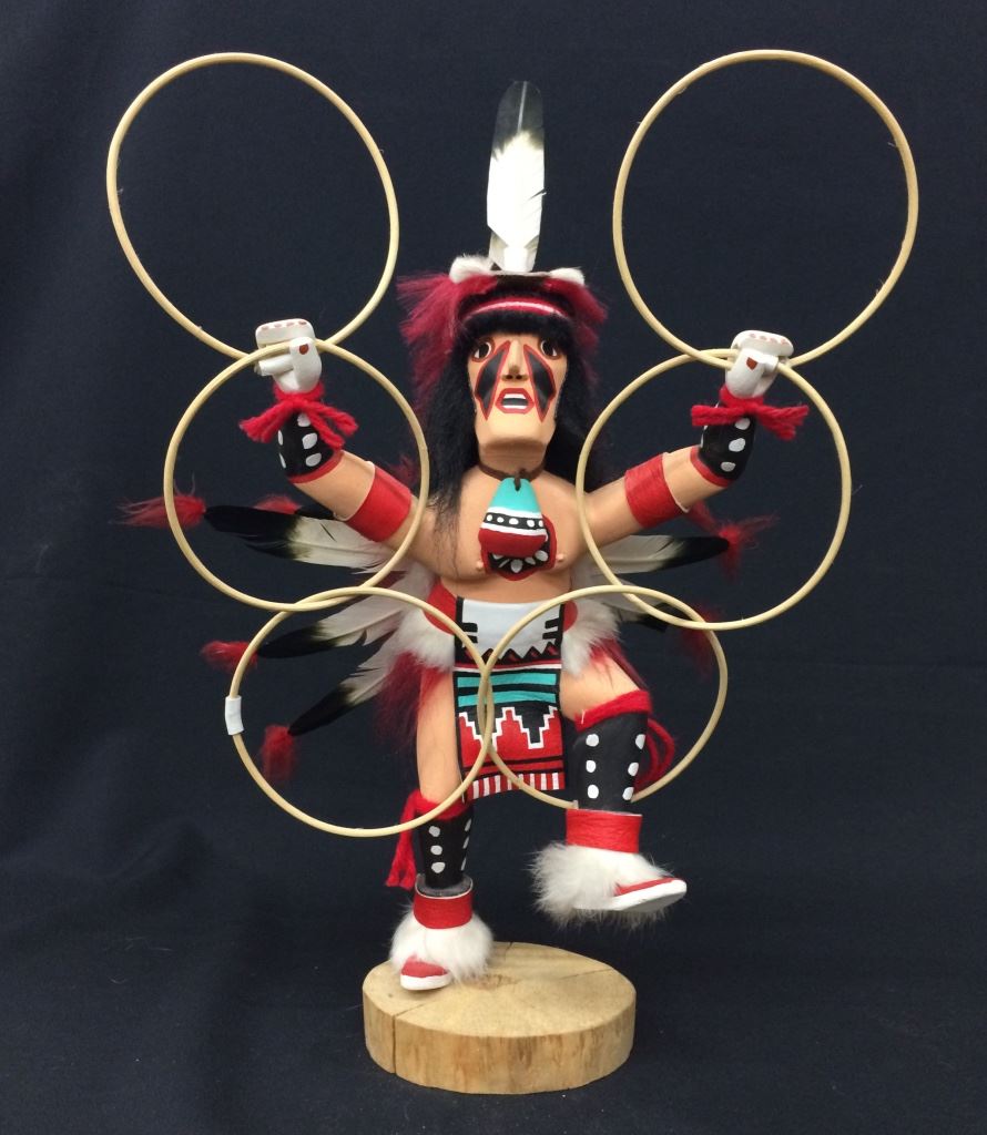 This hoop dancer Navajo Kachina doll is signed Burbank. It is in good condition and stands 16” tall.