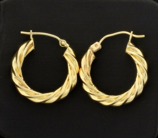 In 14K yellow gold, they are 7/8 inch long. 2.2g