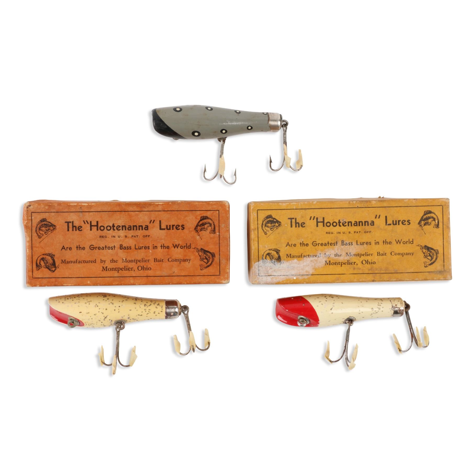 Montpelier Bait Company, United States. Material: Wood. Quantity: 3. Grade: VG. 4.75" boxes. Est. $75-100.