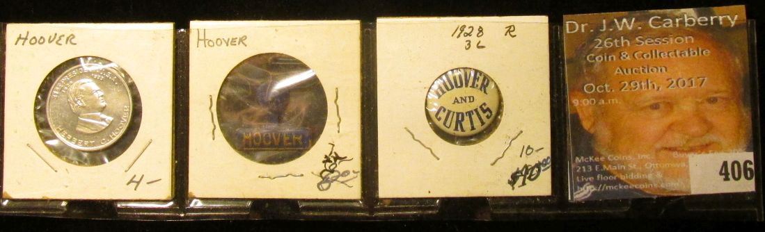 Hoover Presidential Medal, Pocket tab, & "Hoover and Curtis" Pin-back. 'Doc' valued this group at $2