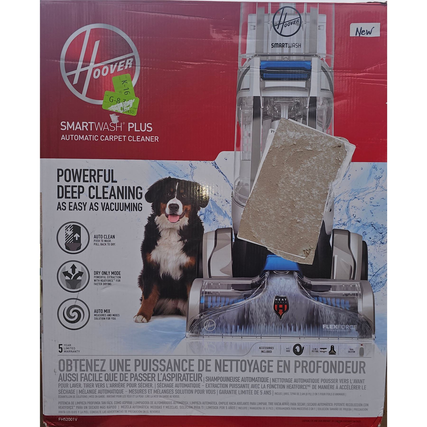 Features auto-clean motion sensing technology and dry only mode, includes a 5-year warranty, new.