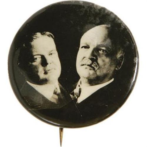 <B>Hoover and Curtis Jugate 1¼" Pinback</B></I> having high contrast portraits of the Republican candidates for 1928 and 1932. A tiny bit of rusting on the back, else very fine condition. A somewhat spooky button.<BR><BR><b>Shipping:</b> Miscellaneous Collectibles, Smal (<a target="_blank" href="http://www.heritageauctions.com/common/shipping.php">view shipping information</a>)