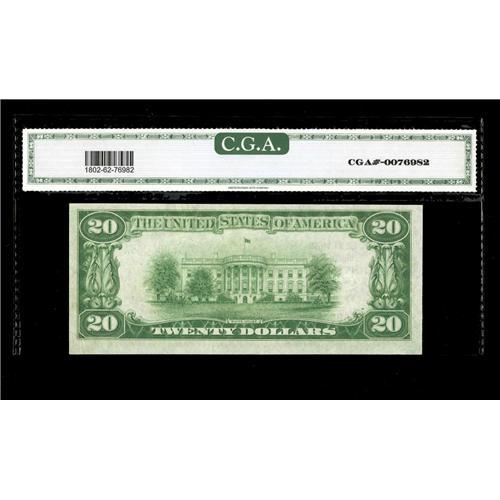48B. CURRENCY – Notes sold referencing a third-party grading service are sold "as is" without any express or implied warranty, except for a guarantee by Auctioneer that they are genuine. Grading, condition or other attributes of any lot may have a material effect on its value, and the opinion of others, including independent grading services such as PCGS Currency, PMG, and CGA may differ with that of Auctioneer. Auctioneer shall not be bound by any prior or subsequent opinion, determination, or certification by any independent grading service. Bidder specifically waives any claim to right of return of any item because of the opinion, determination, or certification, or lack thereof, by any independent grading service. Certain warranties may be available from the grading services and the Bidder is referred to them for further details: Paper Money Guaranty (PMG), PO Box 4711, Sarasota FL 34230; PCGS Currency, PO Box 9458, Newport Beach, CA 92658; Currency Grading & Authentication (CGA), PO Box 418, Three Bridges, NJ 08887.