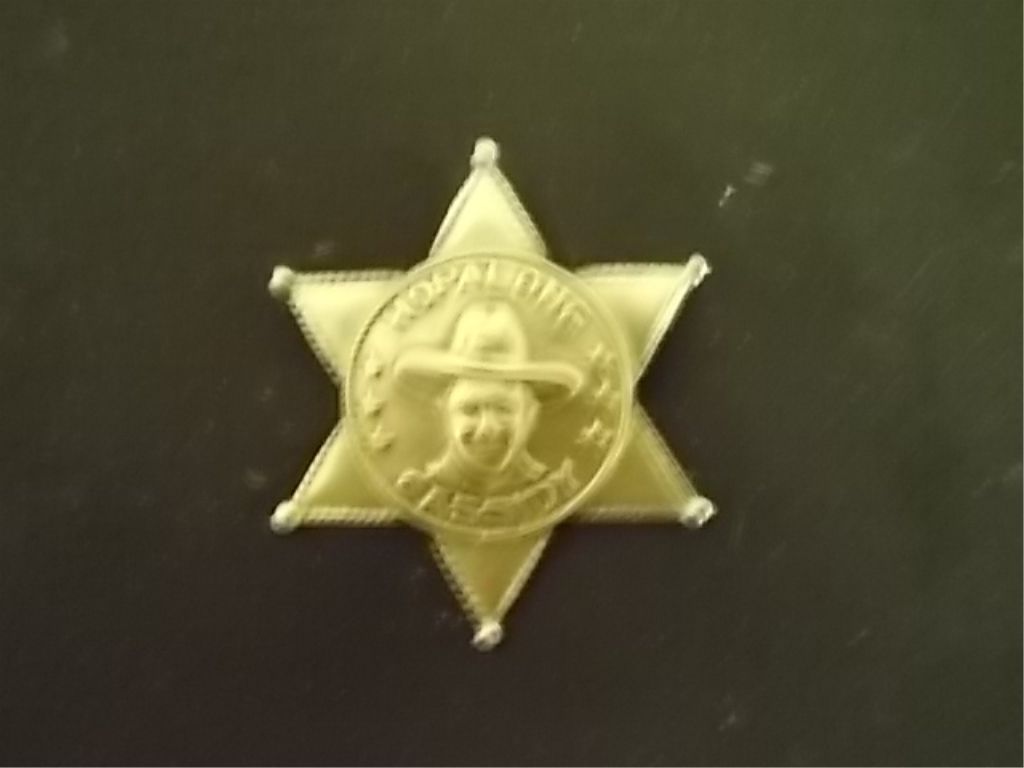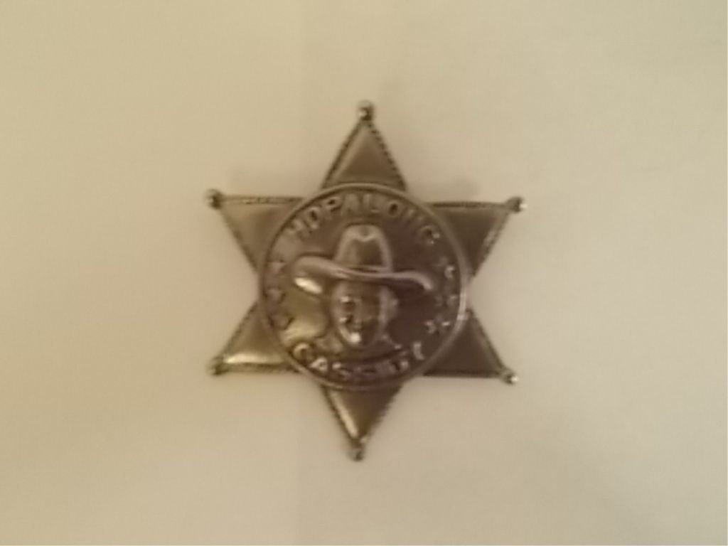 Hopalong Cassidy 2 1/4” 6 point hand hammered silver metal badge. Mint condition. This item is from the fabulous Western Hero’s collection of Chuck Quinn. Google: ‘Chuck