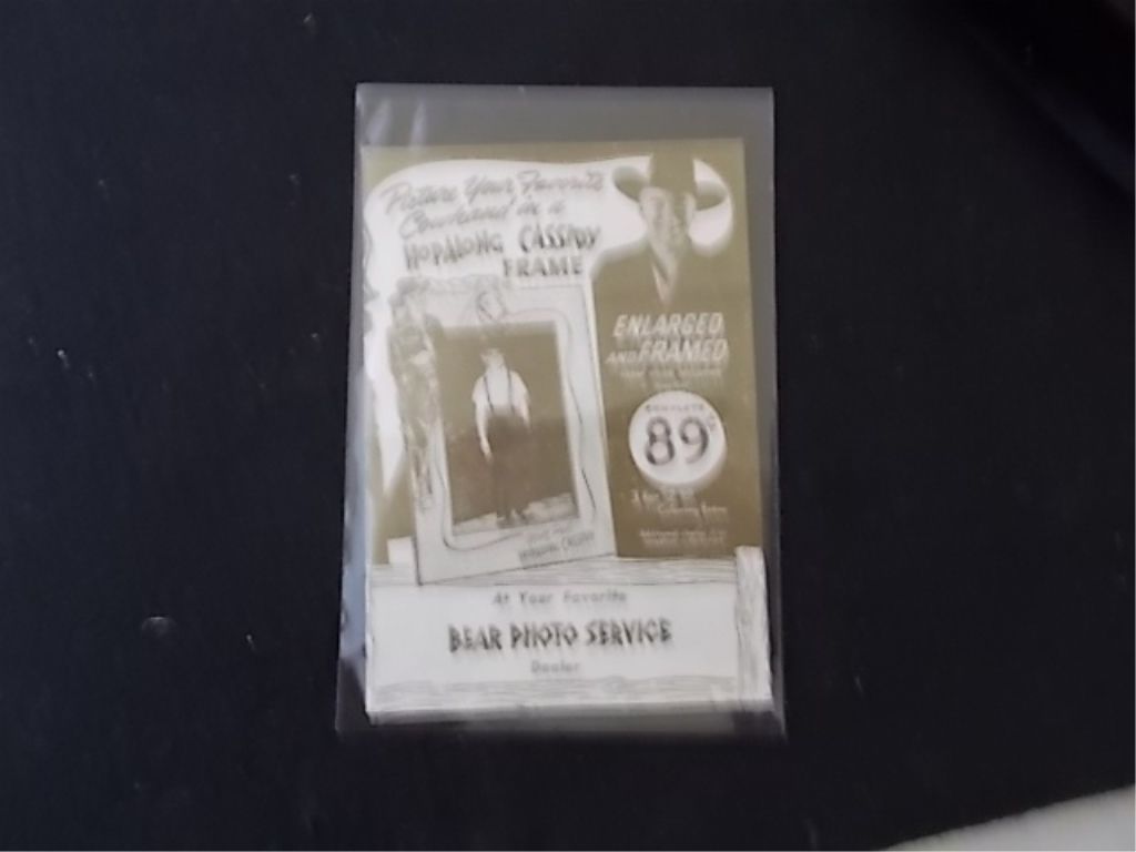 Hopalong Cassidy Frame ad. ‘Picture your favorite cowhand in a Hopalong Cassidy frame’ This item is from the fabulous Western Hero’s collection of Chuck Quinn. Google: ‘Chuck