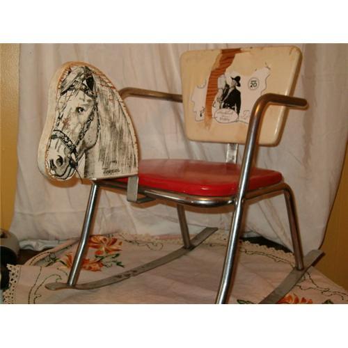 </font></strong>Rare 1950's chrome hopalong cassidy and topper child's rocker. Topper head could be removed as the child grew. excellent shape except for the top back where the vinyl is torn. Relive your childhood with this great cowboy rocker. The 2 bolts are missing in the back </font>