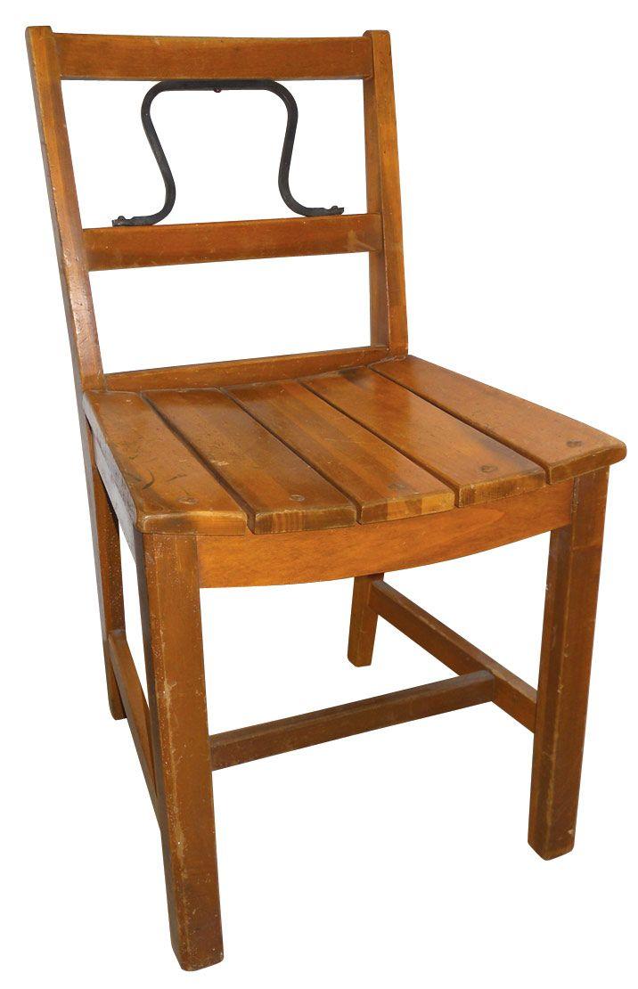 Hopalong Cassidy desk or side chair, Rare, hard maple w/orig surface, slatted seat & iron back decor