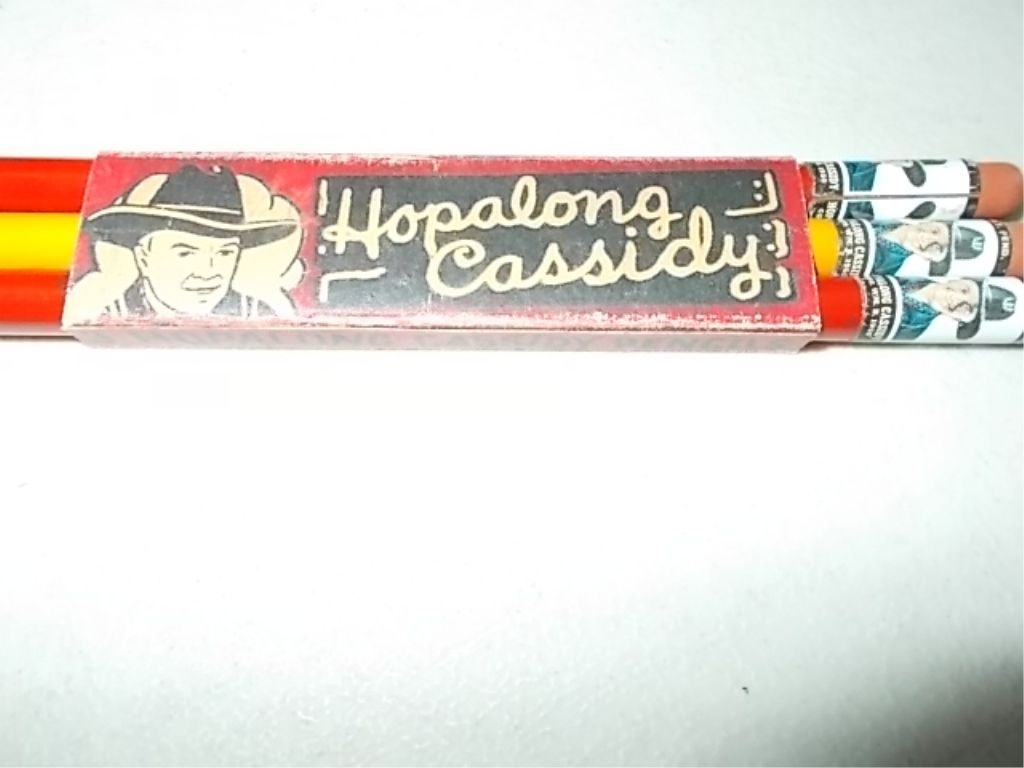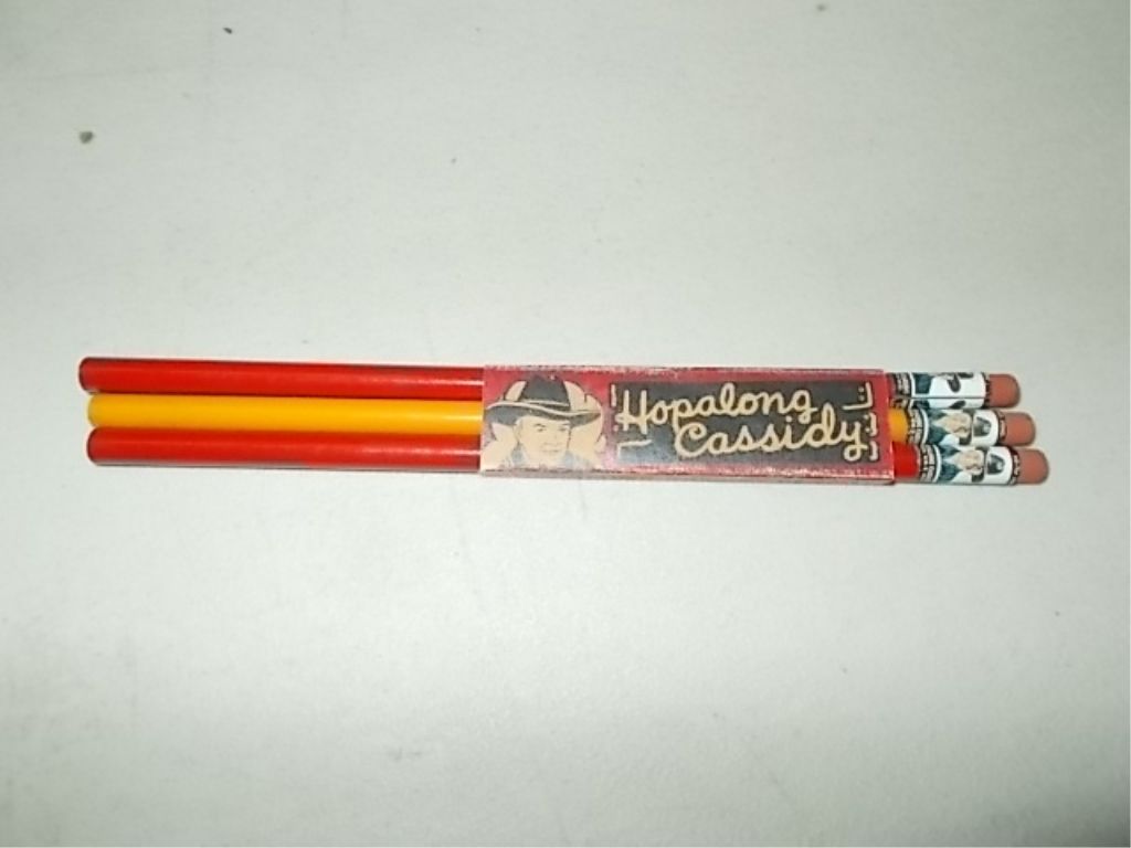 Hopalong Cassidy pencils with sleeve in mint condition. 3 pencils 7 ½“ long. This item is from the fabulous Western Hero’s collection of Chuck Quinn. Google: ‘Chuck