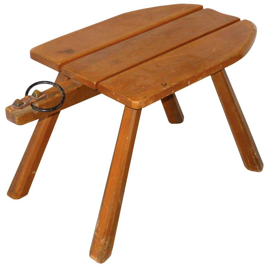 Hopalong Cassidy stool w/splayed legs & saddle seat, Rare, hard maple w/orig surface, c.1950's, Exc
