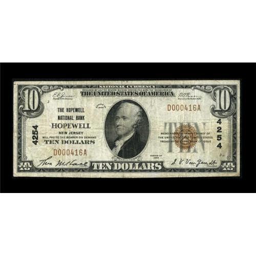 <B>Hopewell, NJ</B></I> - $10 1929 Ty. 1 <B>The Hopewell NB</B></I> Ch. # 4254<BR> A pleasing <B>Very Good-Fine </B></I>example.<BR><BR><b>Shipping:</b> Coins & Currency (<a target="_blank" href="http://www.heritageauctions.com/common/shipping.php">view shipping information</a>)