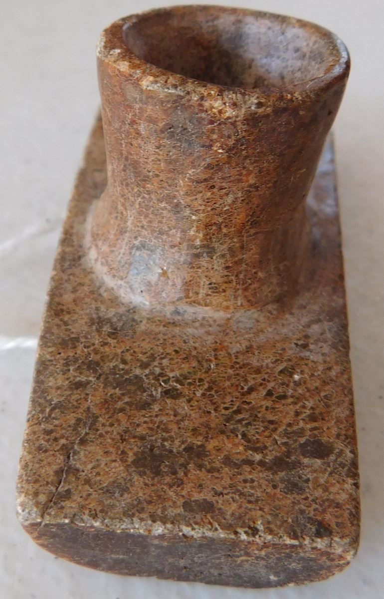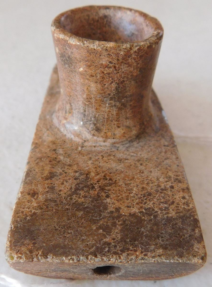 Hopewell Pipe, pre-historic item. Made of hardstone, this item measures 3" x 1.5" x 1". From Ohio. Nice platform pipe. Condition: Good, see images. Shipping: $16.50.