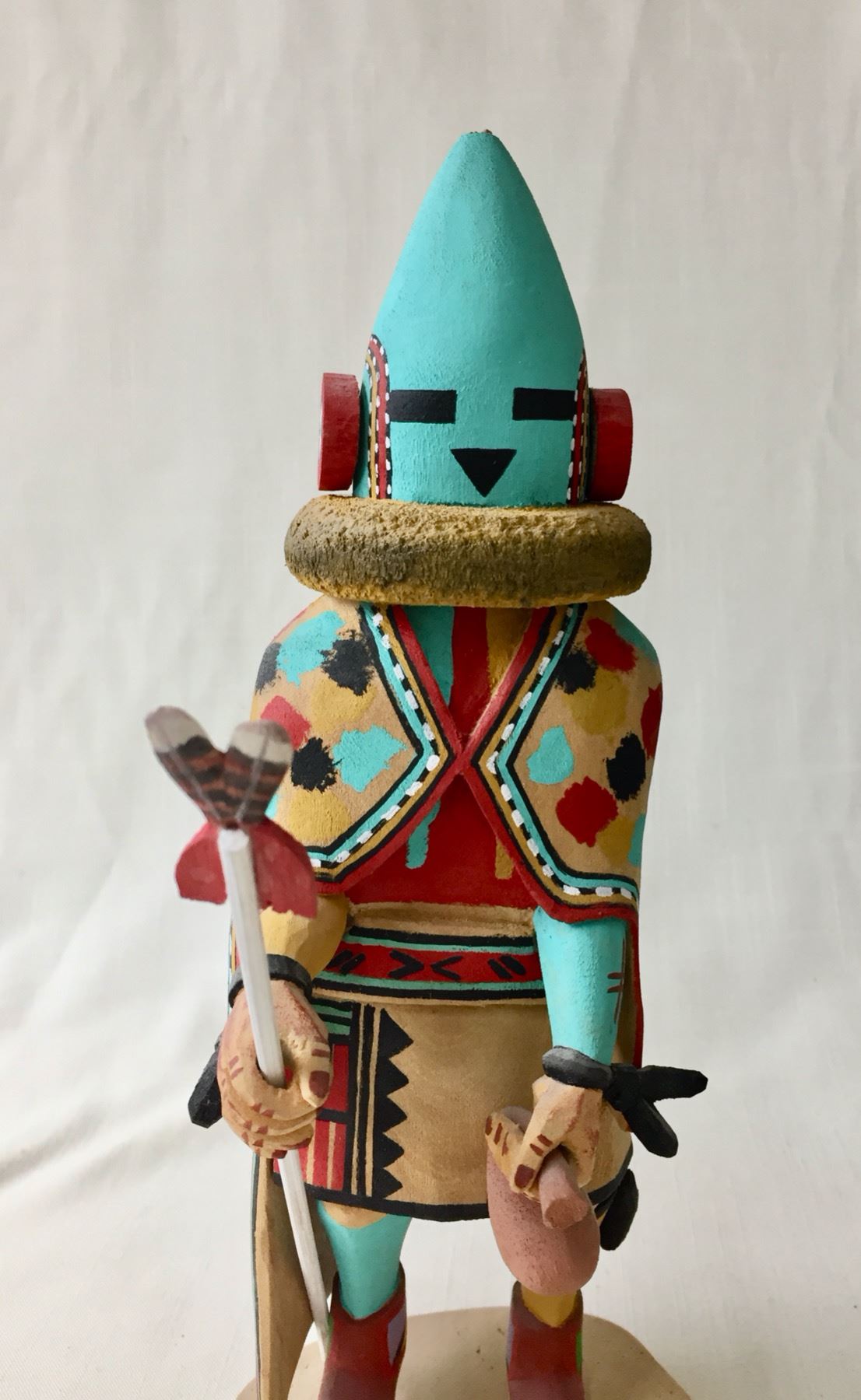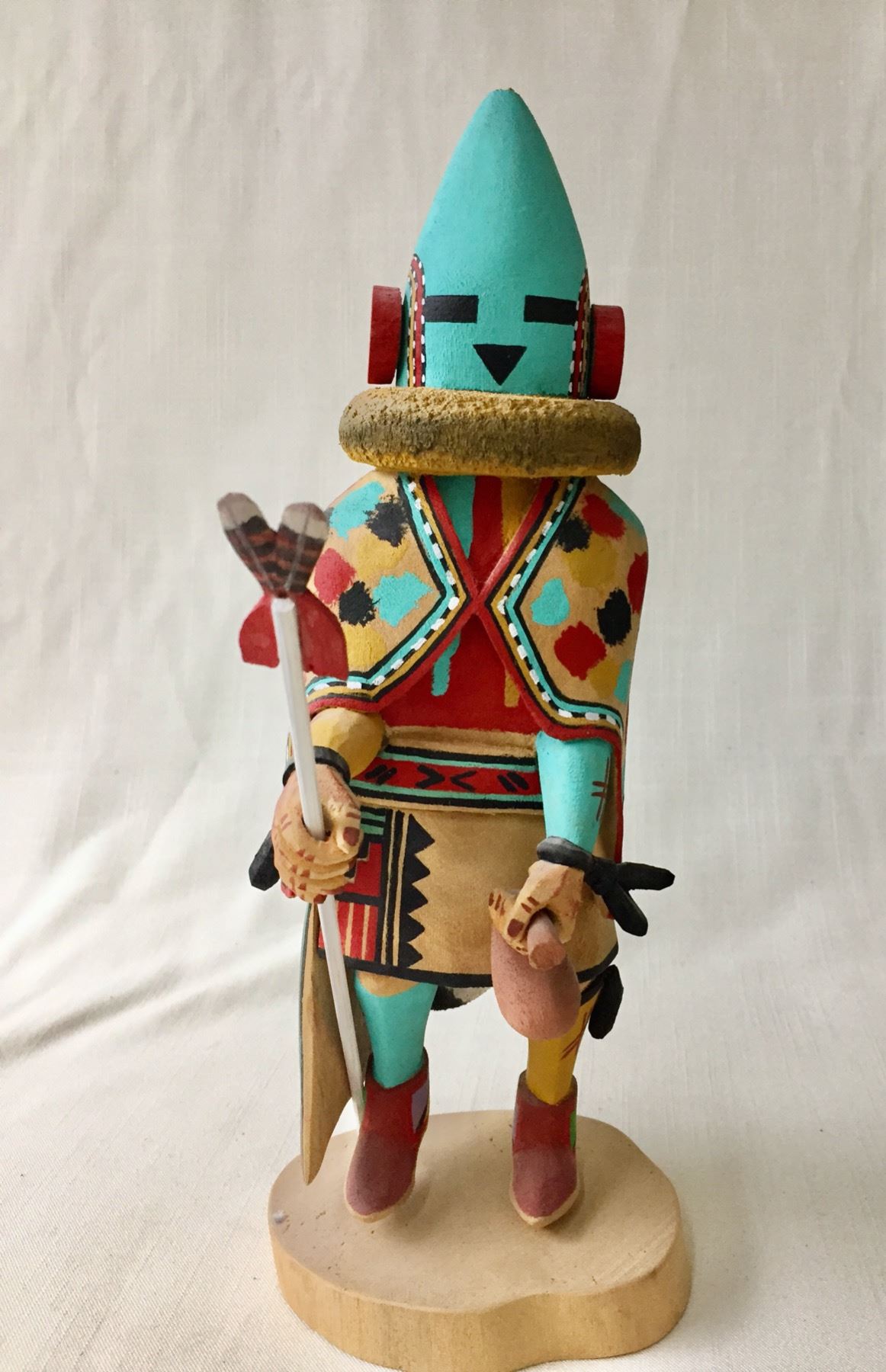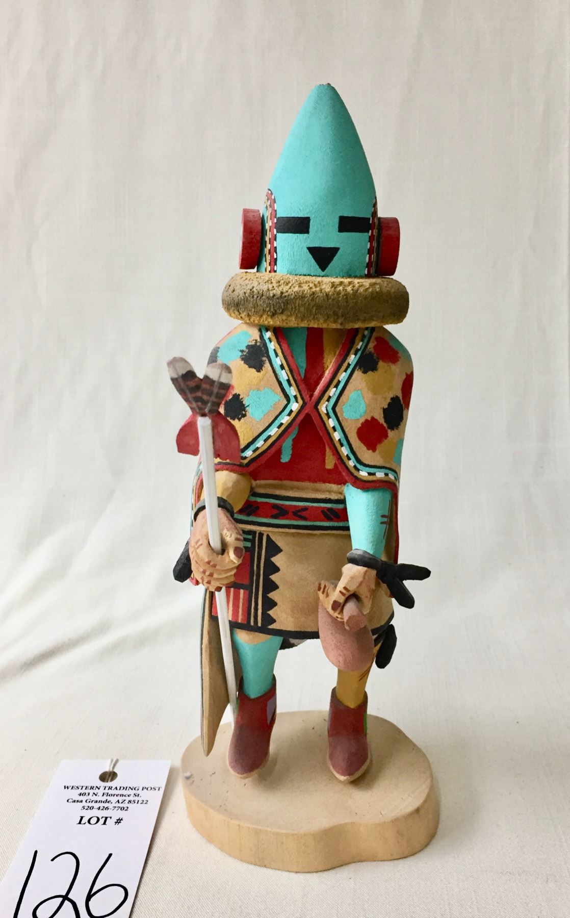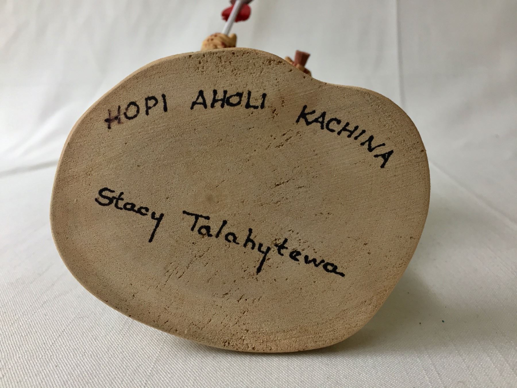 Description: Offered for sale in this lot is a great Aholi Kachina. This is a beautiful hand crafted and hand painted Hopi Kachina. Maker: Stacy Talahytewa, Hopi. Approx. Age: Fairly modern. Size: 11 inches tall x 4-1/4 inches wide. Condition: Good for its age, normal wear expected. Please look closely at the pictures - they are an important part of our description. Shipping: There will be a $8 handling, packaging fee for shipping this lot. The actual cost of postage will be added on top of that.