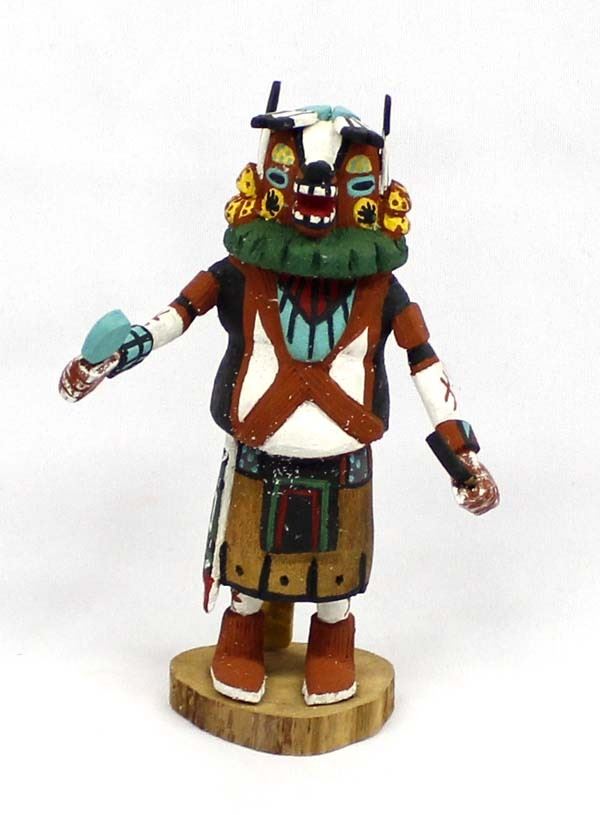 Native American Hopi Badger Medicine Man Kachina by Esther Jackson, measures 7'' x 4.5'' and is signed, FYI: ''Hopi Artist Esther Jackson is from First Mesa (old Hopi Village) Polacca, AZ which is in Northeastern Arizona. She has taught seminars on Kachinas and is a recognized First Mesa artist.''