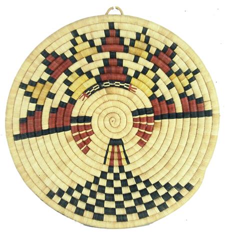 Circa 1950s, Fabulous finely coiled tray with butterfly maiden  katsina motif. Pristine condition. 13-3/4" dia.