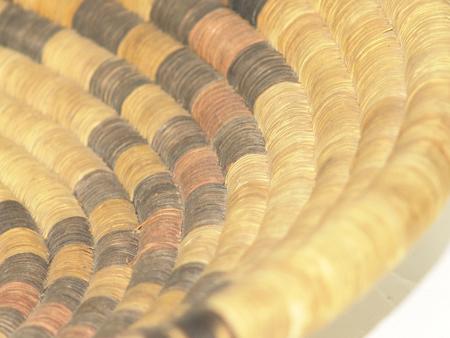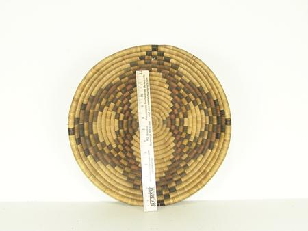 Circa 1930s, Fine coil weave 2nd Mesa tray with classic polychrome design. Very good condition, a few missing stitches, some fading. 2-3/4" x 14" From the Johnson Collection.