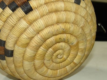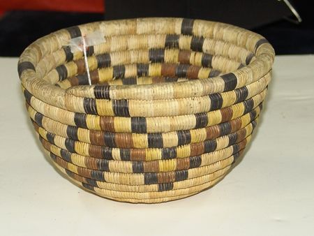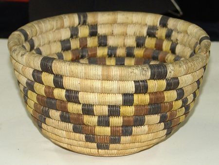 Mid 1900s, Classic coiled 2nd Mesa bowl with traditional four-color zigzag design. Very good condition, with some soiling on rim. 5" x 8"