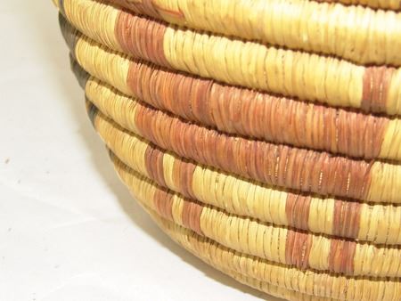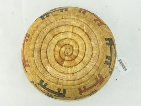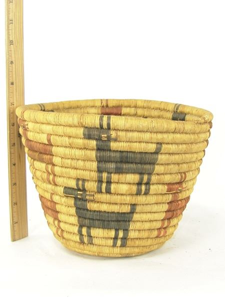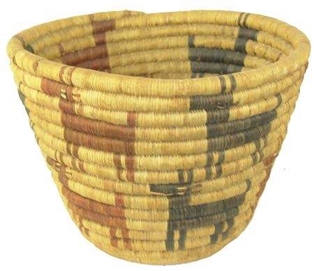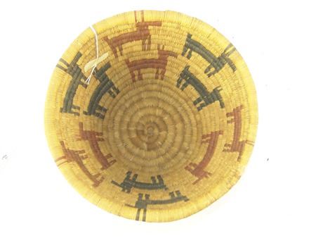 Early/Mid 1900s, Beautiful coiled weave 2nd Mesa bowl covered with pairs of animal figures (dogs/horses/deer?). Good condition with a few missing/damaged rim stitches. 7" x 9-1/2" dia.